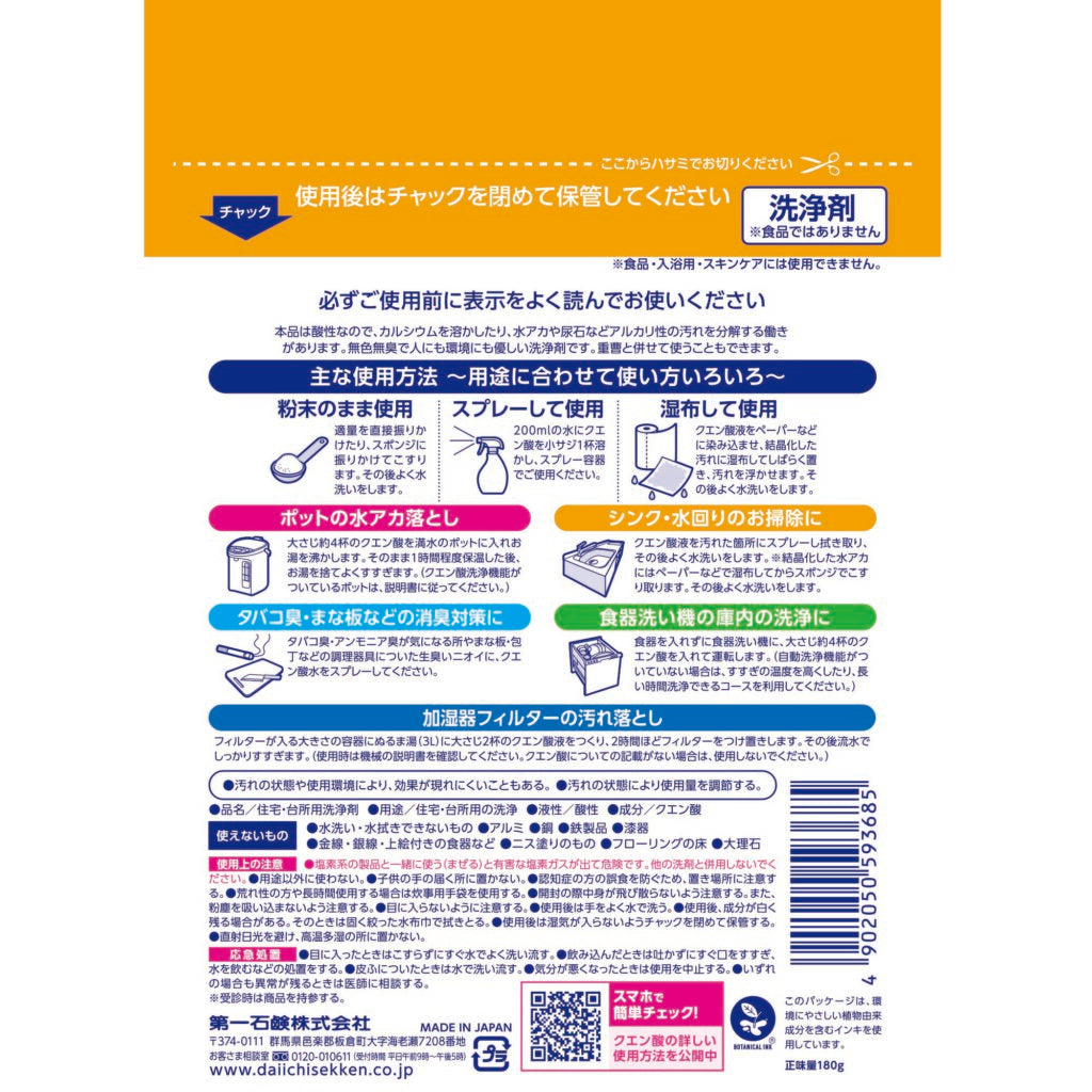 第一石鹼天然檸檬酸具有溶解鈣和分解水垢及尿石等鹼性污垢的能力。