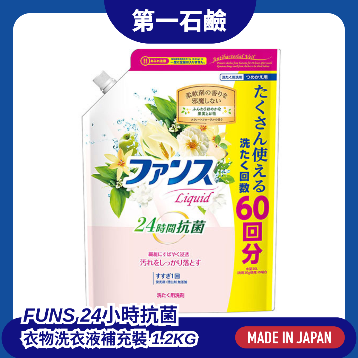 第一石鹼 FUNS 抗菌洗衣液大包補充裝 1.2kg